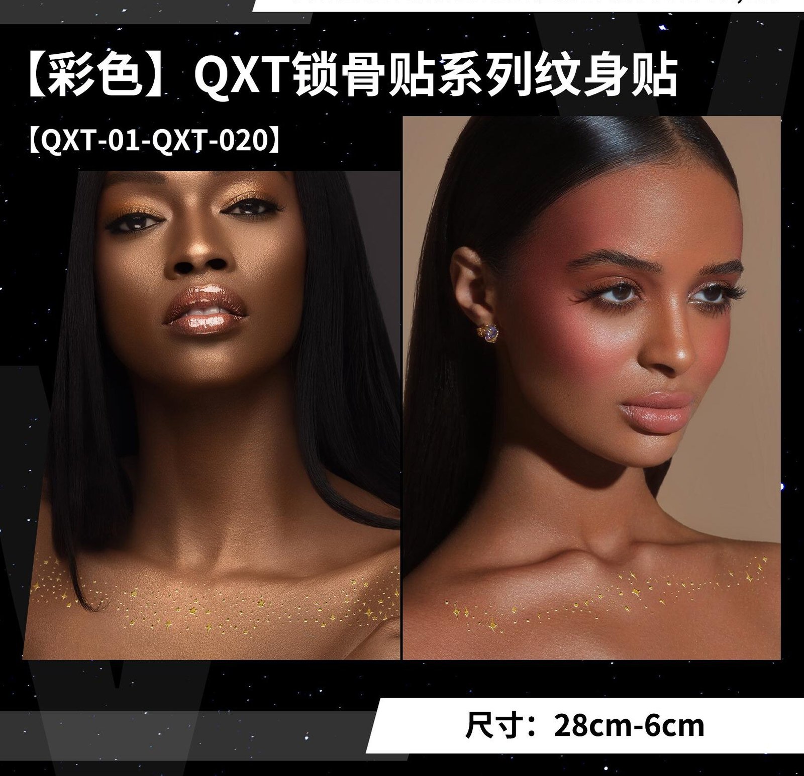High-quality temporary tattoo stickers suitable for fingers, wrists, neck, ankles, face, and more.