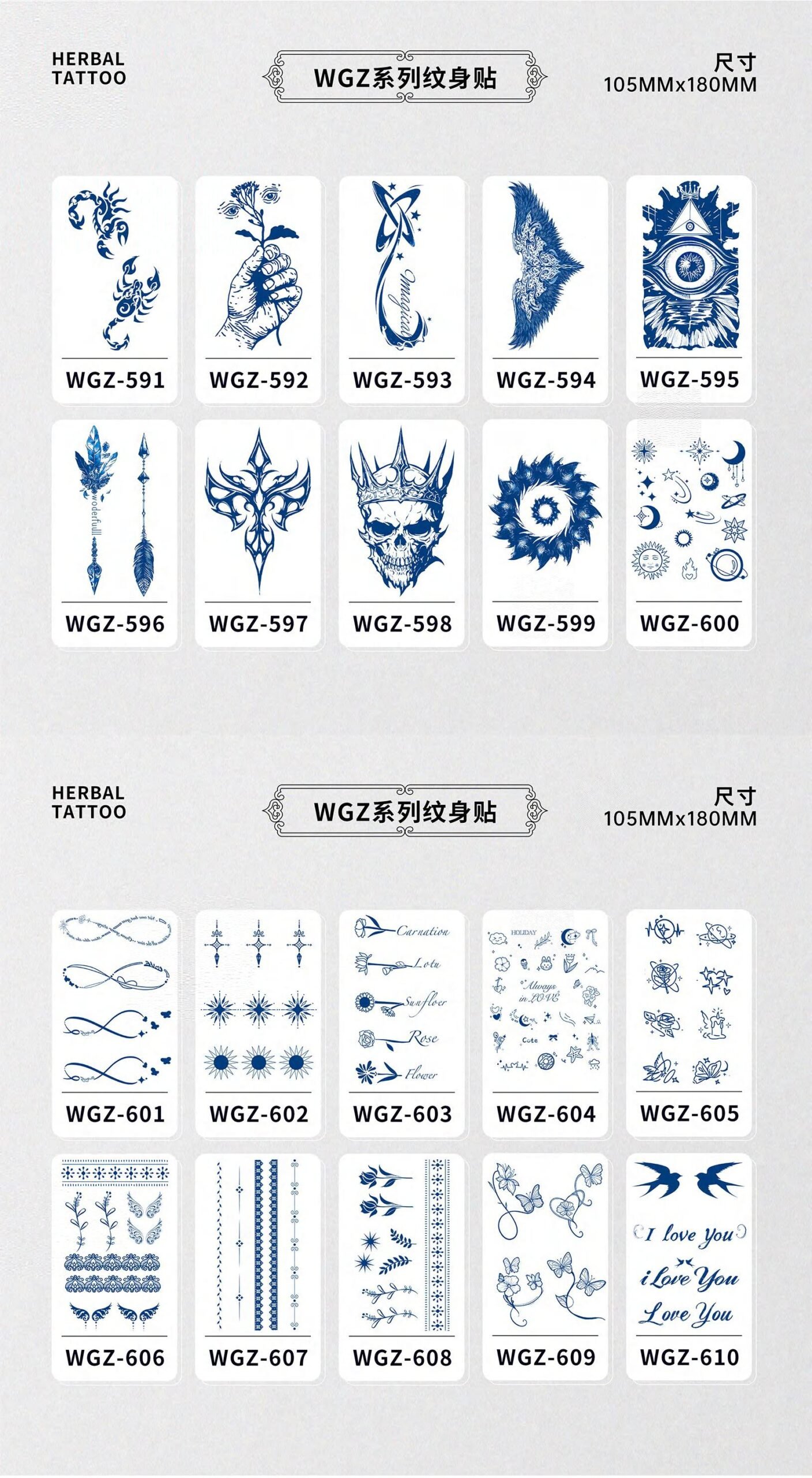 High-quality temporary tattoo stickers suitable for fingers, wrists, neck, ankles, face, and more.