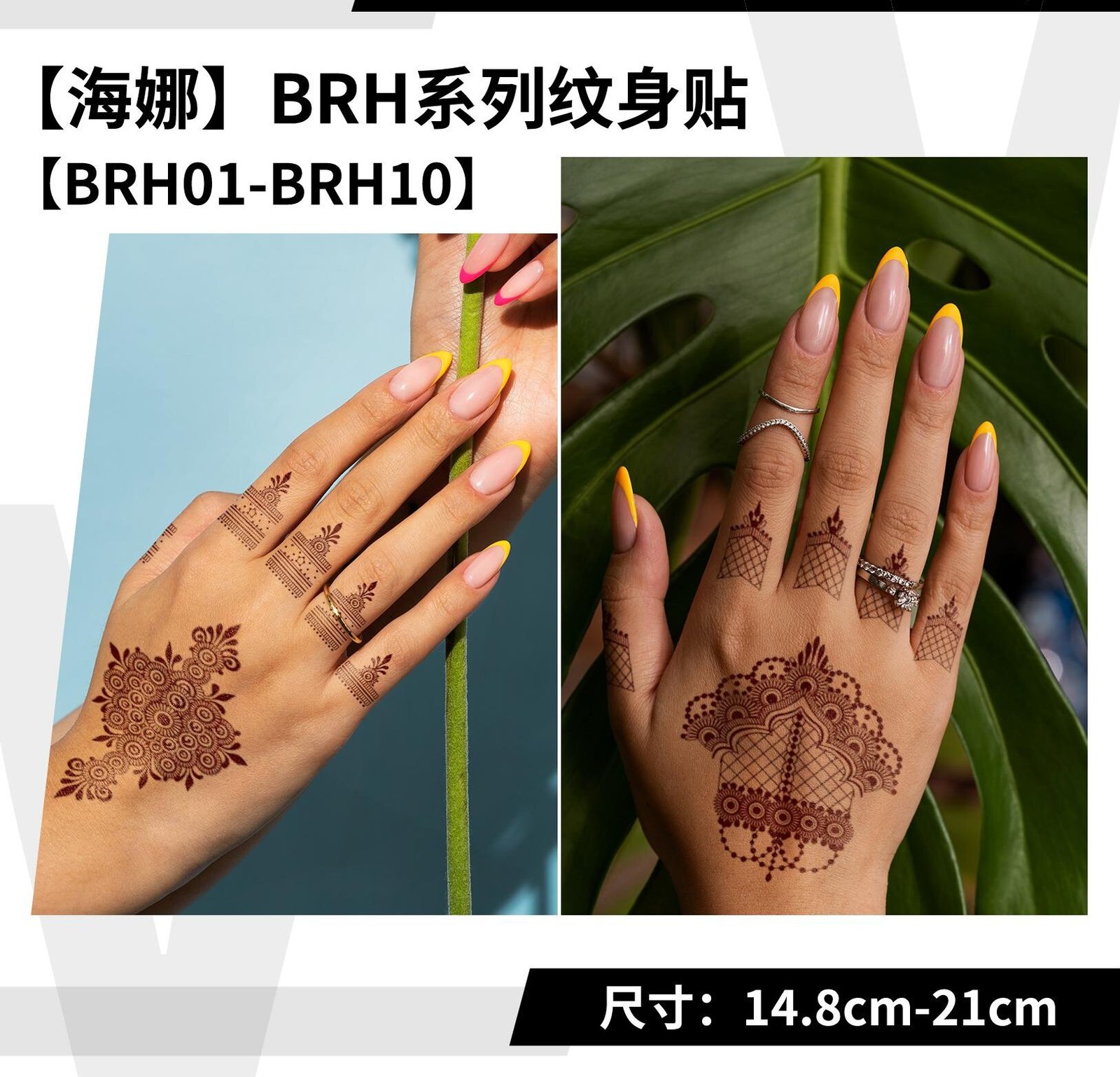 High-quality temporary tattoo stickers suitable for fingers, wrists, neck, ankles, face, and more.