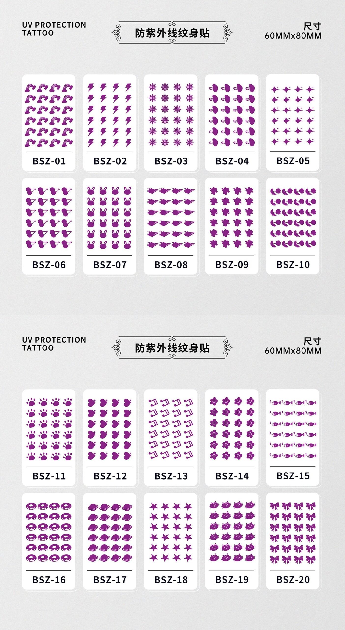 High-quality temporary tattoo stickers suitable for fingers, wrists, neck, ankles, face, and more.