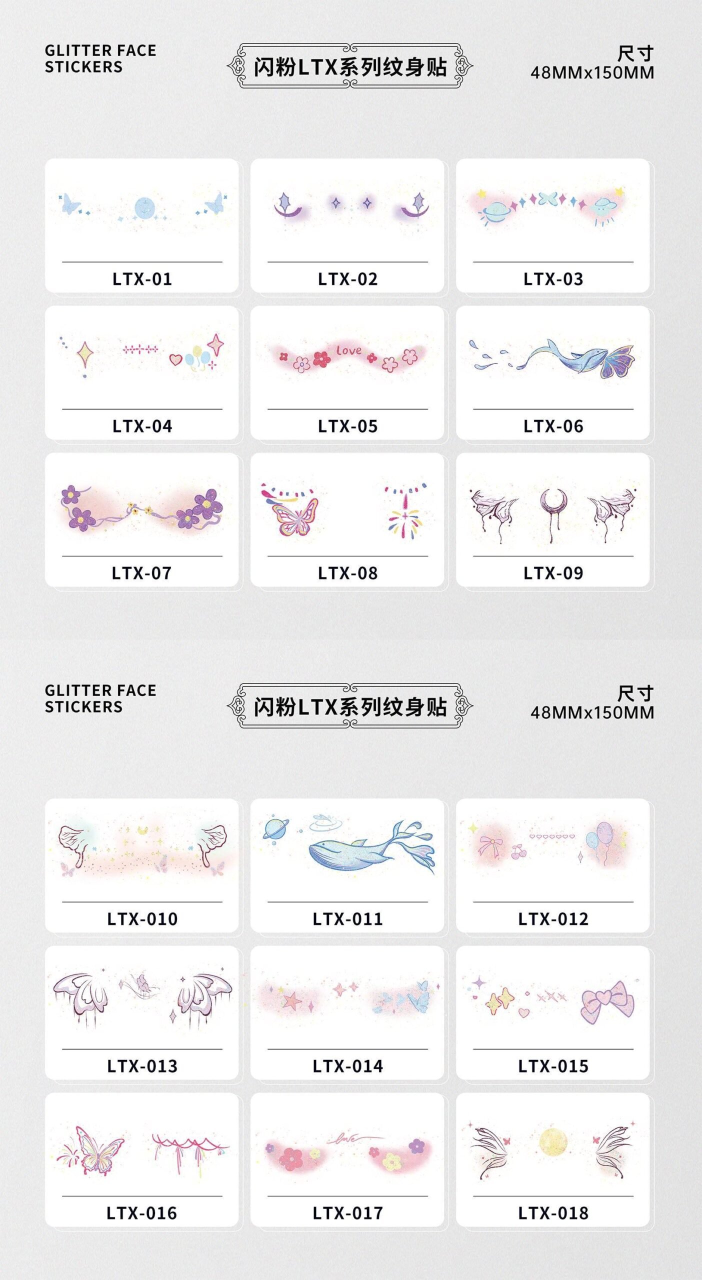 High-quality temporary tattoo stickers suitable for fingers, wrists, neck, ankles, face, and more.
